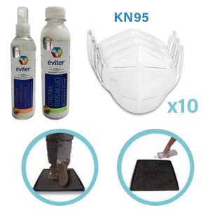 Incluye tapete sanitizante con sanitizante liquido incluido, crema antiséptica, sanitizante de superficies y 10 pz de cubrebocas KN95.